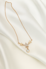 Zelra Crystal-Studded Bow Charm Necklace in Gold Finish (Imitation Jewelry)